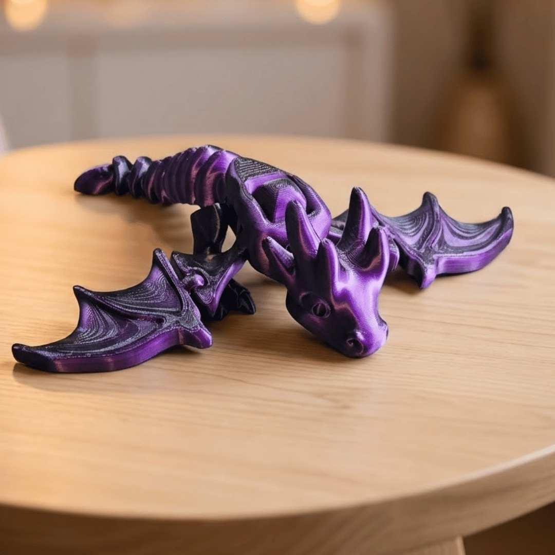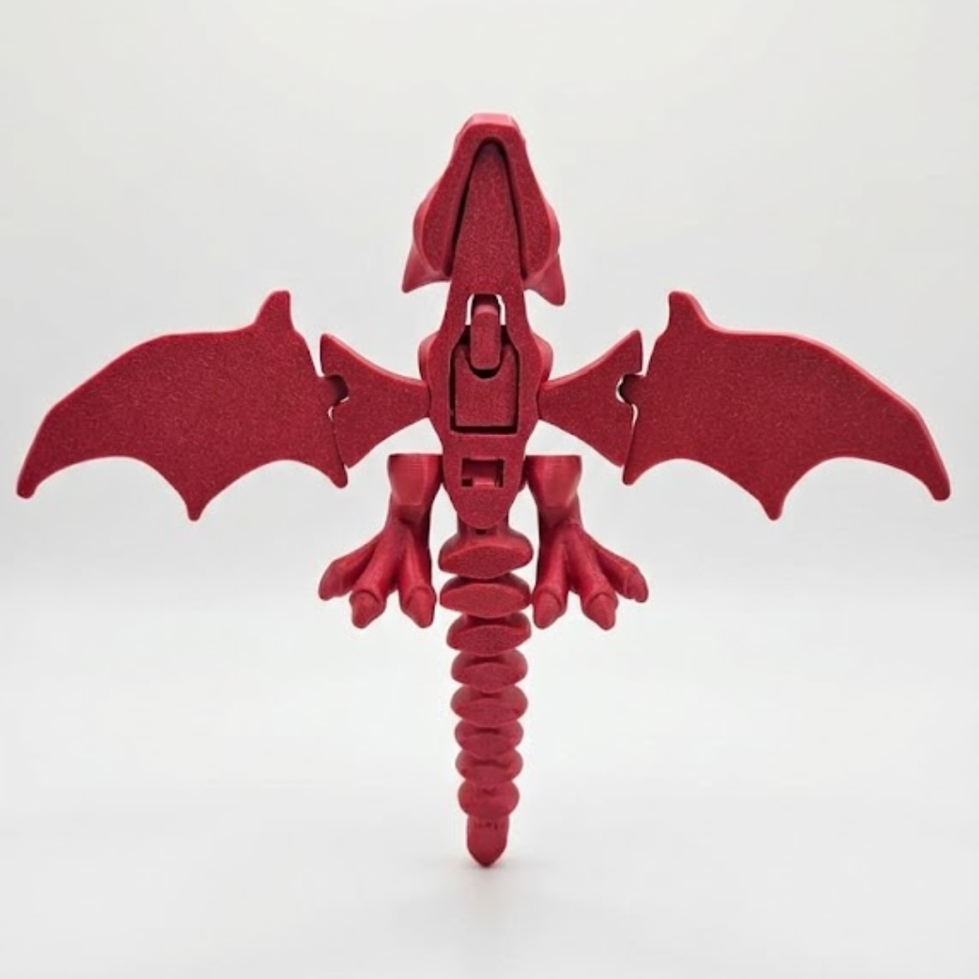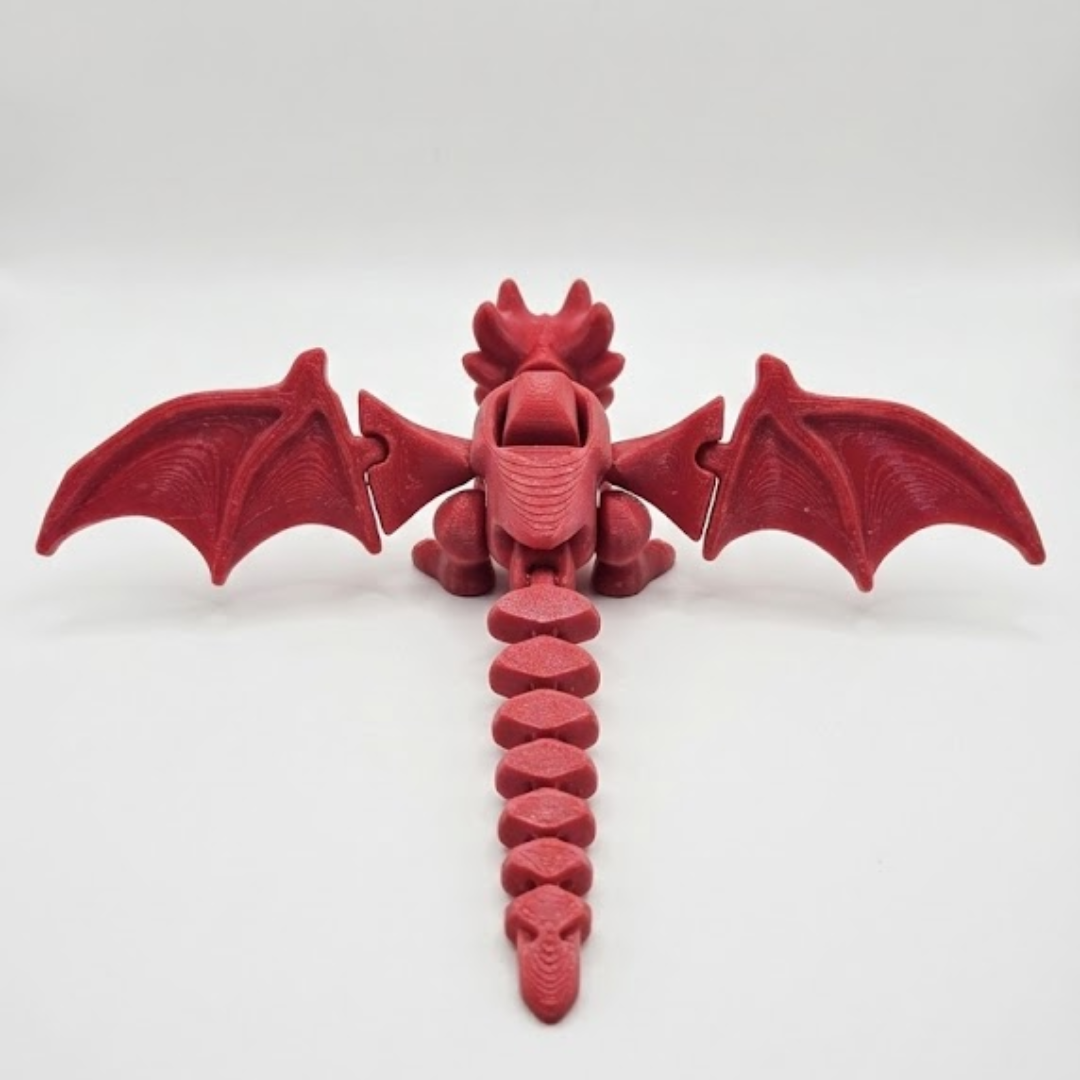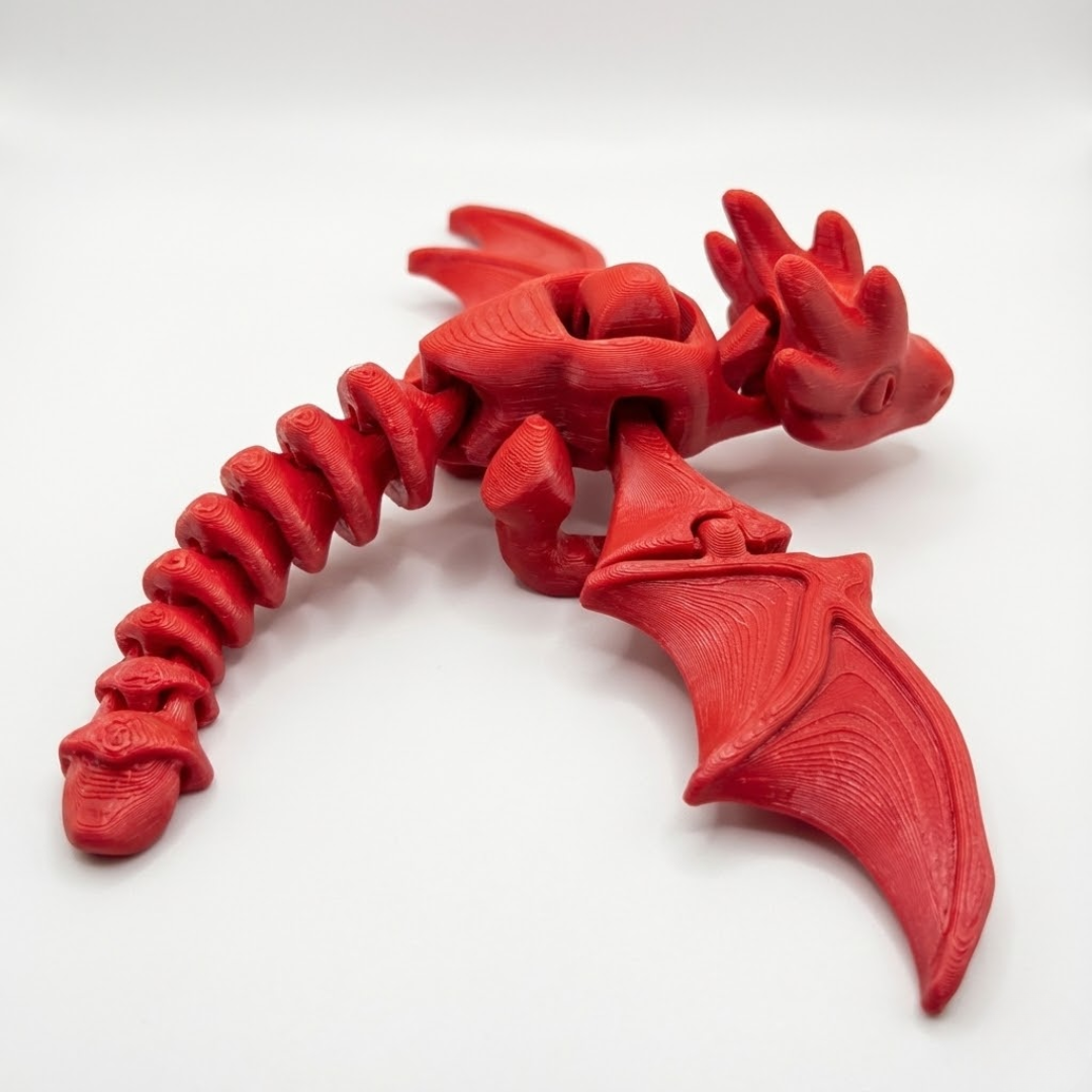 Dragão Articulado Escarlate produzido em impressão 3D, com corpo totalmente articulado e design detalhado. Peça decorativa ideal para fãs de fantasia, RPG, decoração geek, colecionadores e presentes criativos. Resistente, bem acabada e pronta para uso, sem necessidade de montagem.
