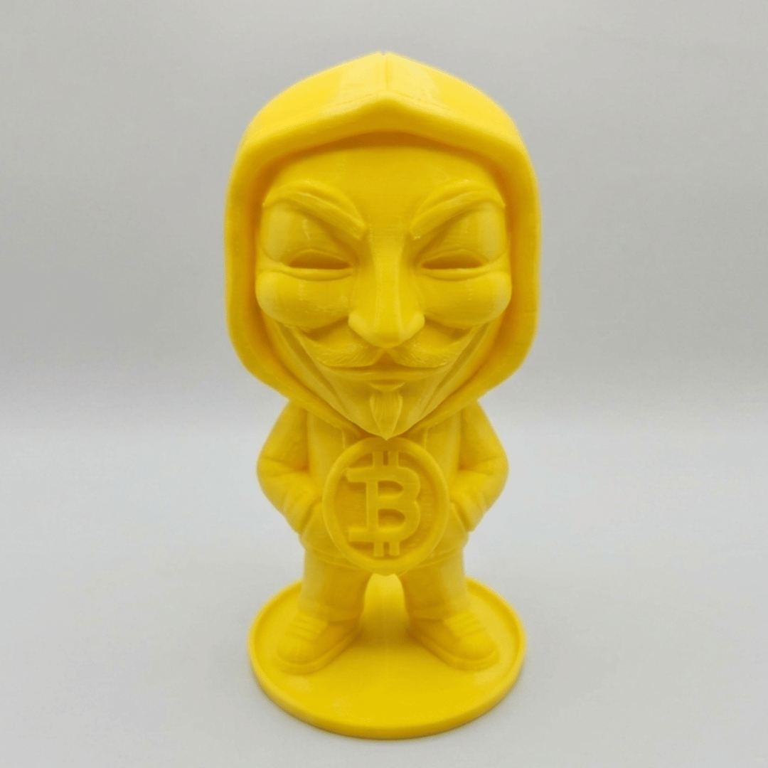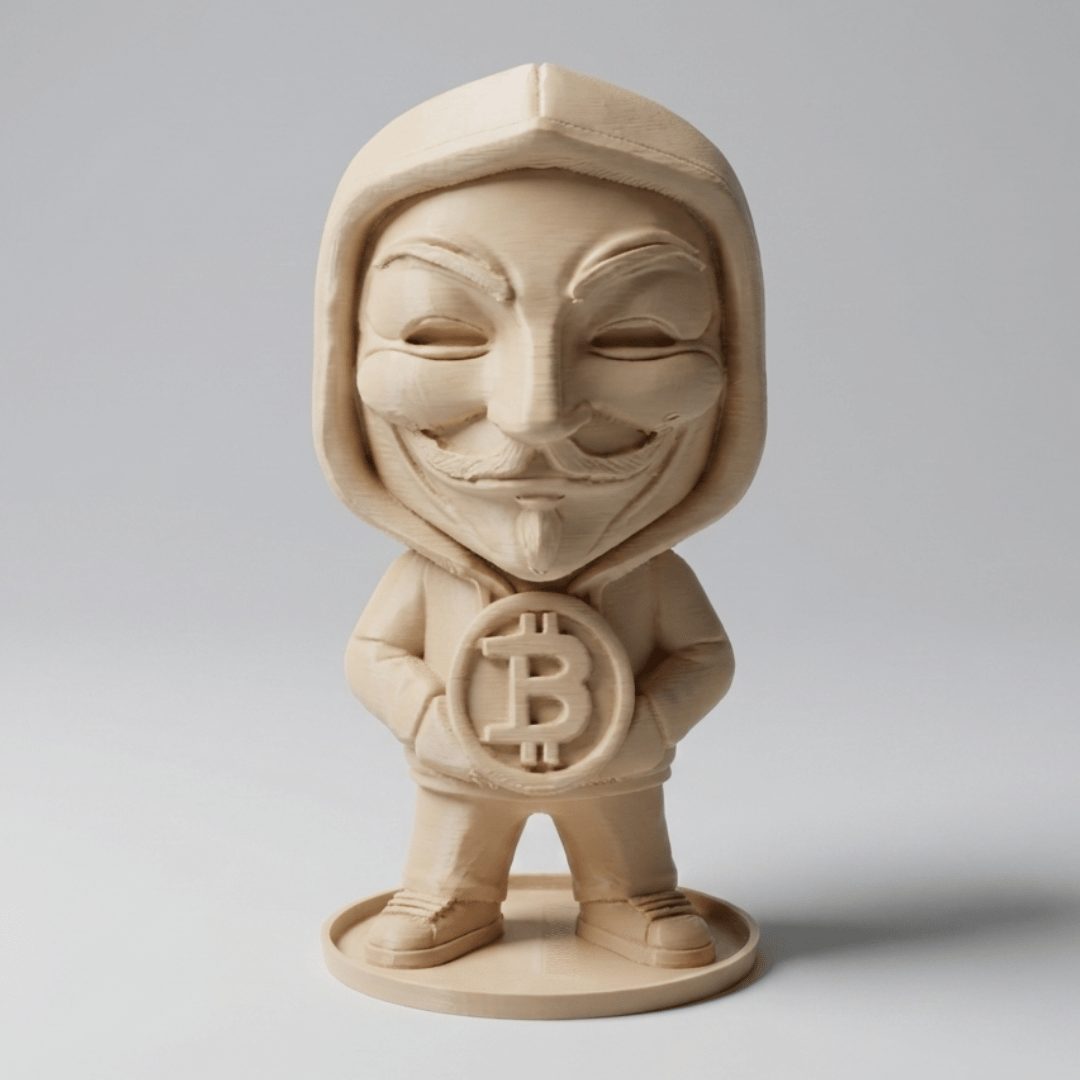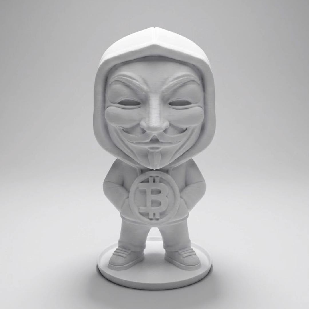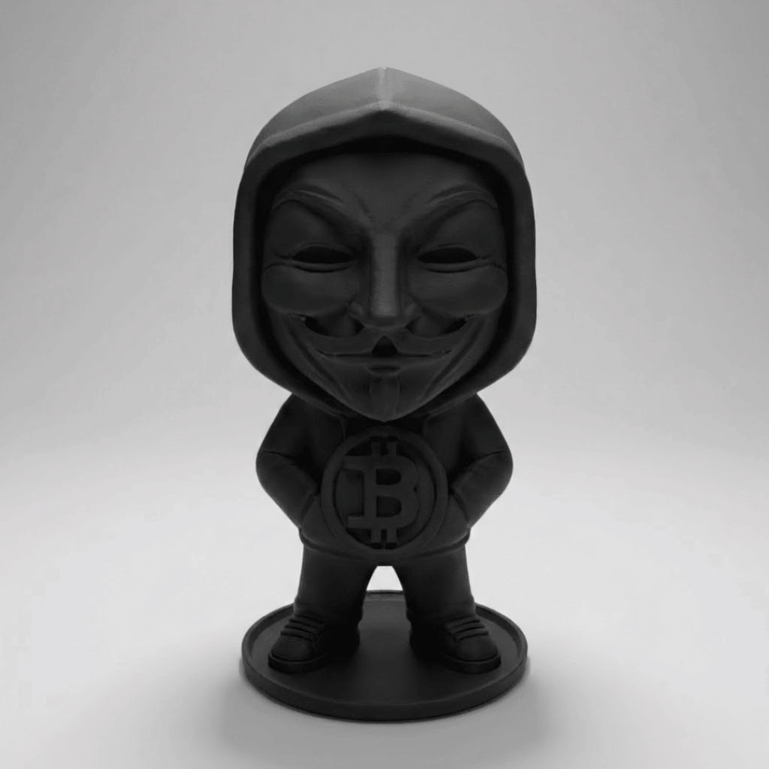 Figura exclusiva inspirada no espírito anônimo do mundo cripto. Ideal para decor, colecionadores e fãs de Bitcoin.